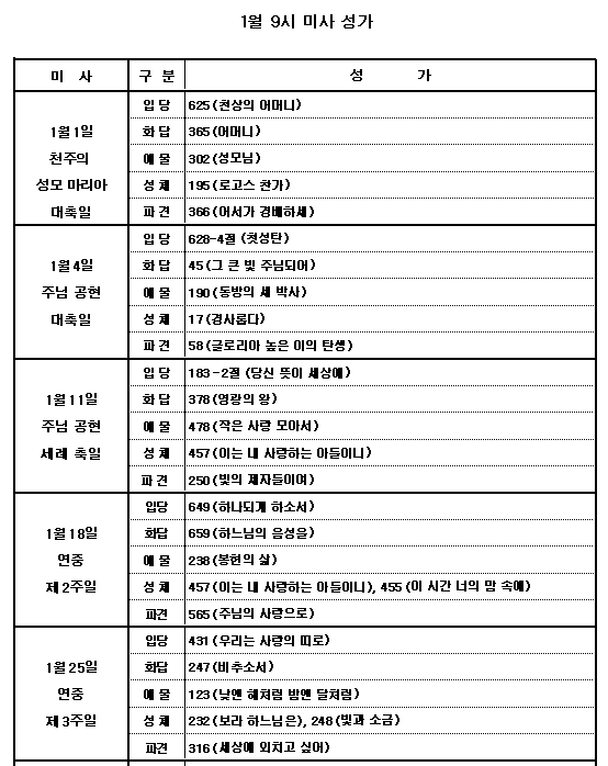 1월 9시 미사 성가
